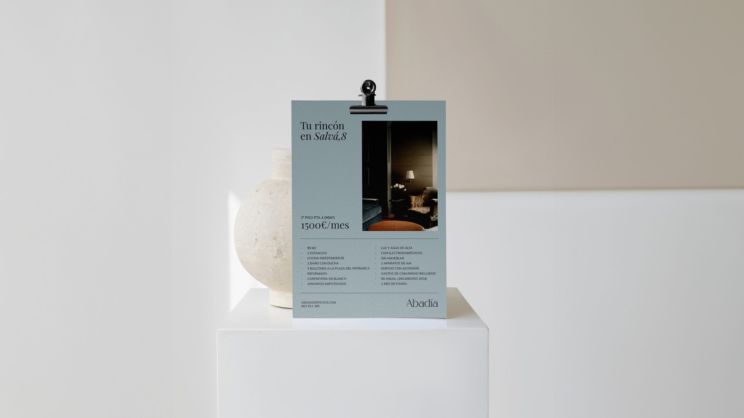 Transmite claridad y seriedad, mientras que los detalles en la letra "a" rinden homenaje a la tipografía valenciana de la época en que Abadía inició su trayectoria.