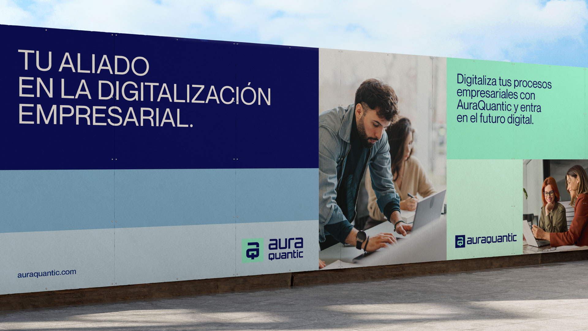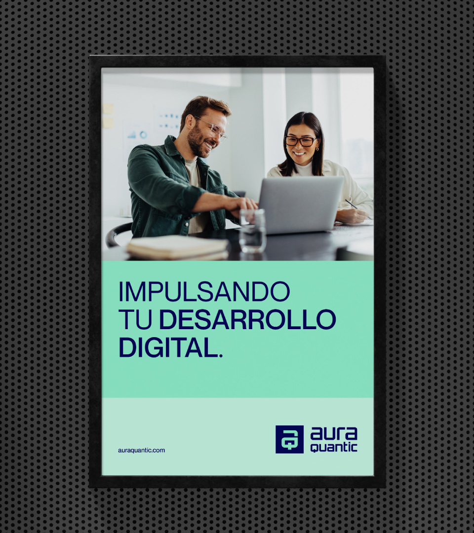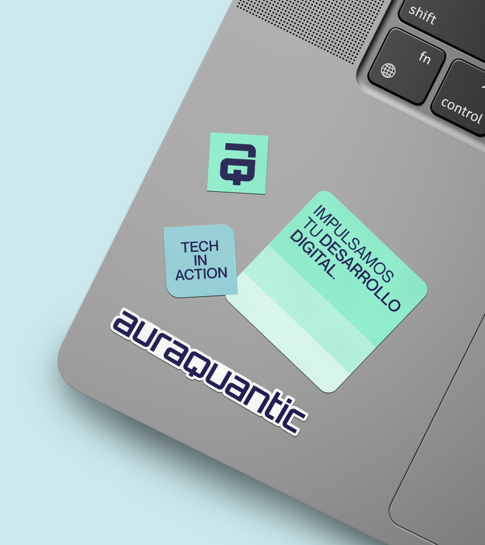 La identidad visual se renueva con un restyling del imagotipo y una paleta de colores vibrante y contemporánea, que transmiten energía e innovación. Este nuevo enfoque refuerza la personalidad de AuraQuantic y proyecta una imagen moderna, coherente y alineada con su liderazgo en transformación digital.